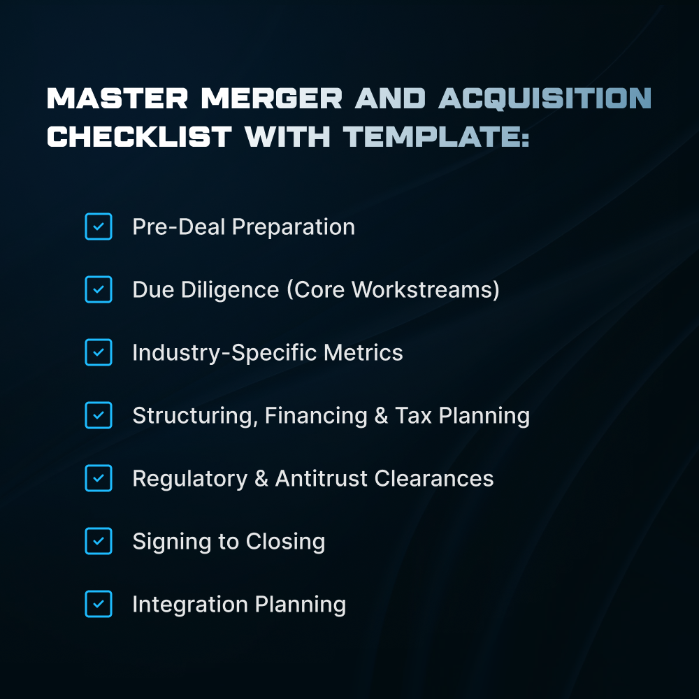 As we’ve outlined throughout this article, each stage of the M&A process plays a crucial role in ensuring a successful outcome. To wrap up, here’s a quick reminder of the checklist we discussed earlier — a practical guide to help you navigate transactions with clarity and confidence.